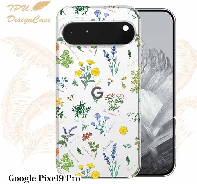 AnglersLife ソフトケース TPUケース Google Pixel 9 Pro クリアケース グーグル ピクセル9 Pro ケース 花柄 ボタニカル柄