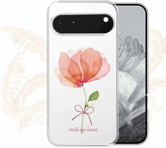 AnglersLife ソフトケース TPUケース Google Pixel 9 Pro クリアケース グーグル ピクセル9 Pro ケース 花柄 ピンクの花 困難に打ち勝つ