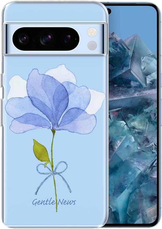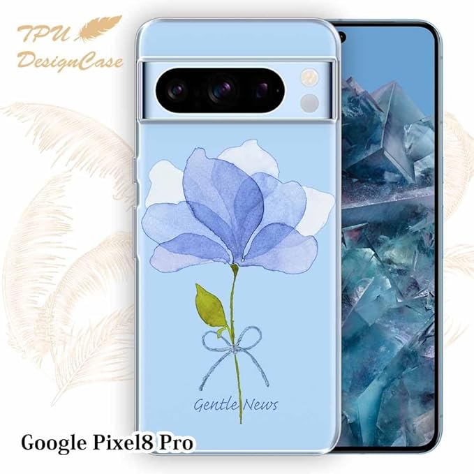 AnglersLife ソフトケース TPUケース Google Pixel 8 Pro クリアケース グーグルピクセル8プロ ケース 花柄 青い花 嬉しいニュース