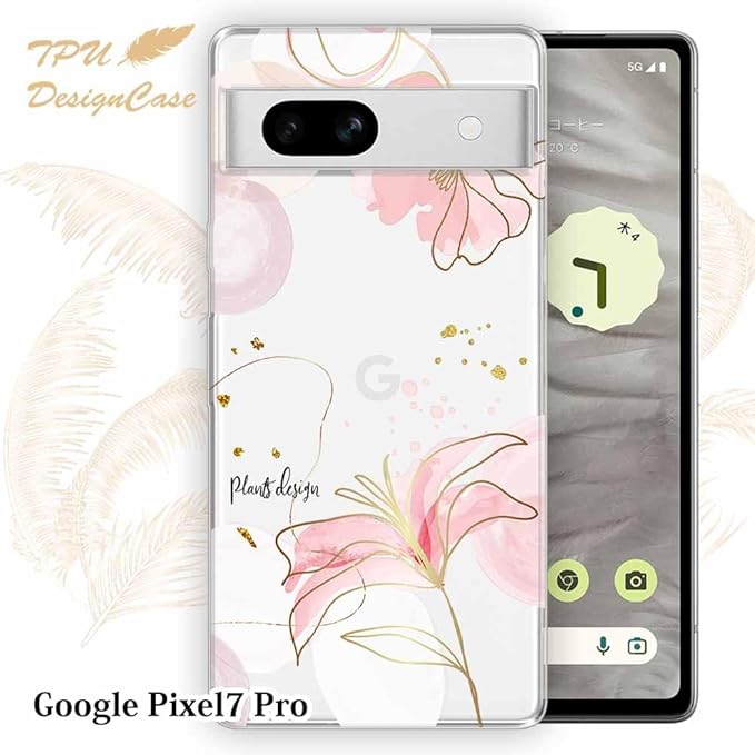 AnglersLife ソフトケース TPUケース Google Pixel 7 Pro クリアケース グーグルピクセル7プロ ケース 花柄 プランツデザイン No.4