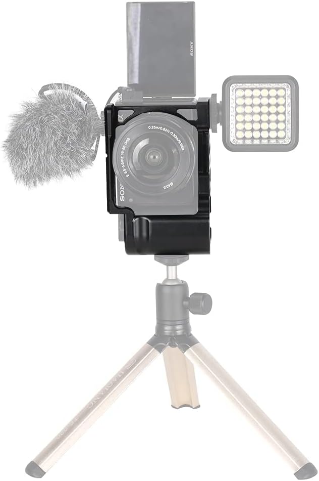 プロ用にデザインされ、高品質の部品を使っているので、Sony ZV-E10カメラ本体にピッタリの形状をしています。アルミニウム合金製のケージは軽量かつ頑丈でカメラを衝撃から守ります。カメラケージで動画撮影を快適に!ケージ頂部はARRIの標準の置決め穴を設計しており、ねじれ防止できます。また、1/4インチネジ穴(カメラ小ネジ)を利用して様々なアクセサリーを装着できます。使用中、カメラ一切のボタン使いや、電池ドア開閉に全然影響無しプロやアマチュアを問わず、カメラマンのための最適な機材です。