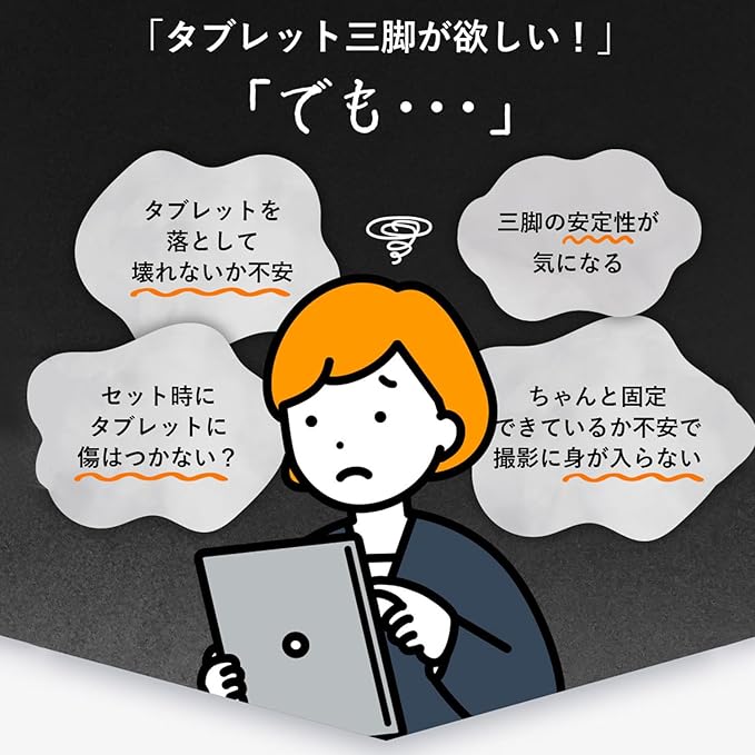 ✅【改良版の雲台&タブレットホルダー】タブレットの重みに耐えうる雲台で安定性UP!角度調整は自由自在、アルミニウム合金製でスムーズかつなめらかな動き。改良版のスマホホルダーはバネの力でしっかり固定!たったのワンアクションでガチっとホールドします。