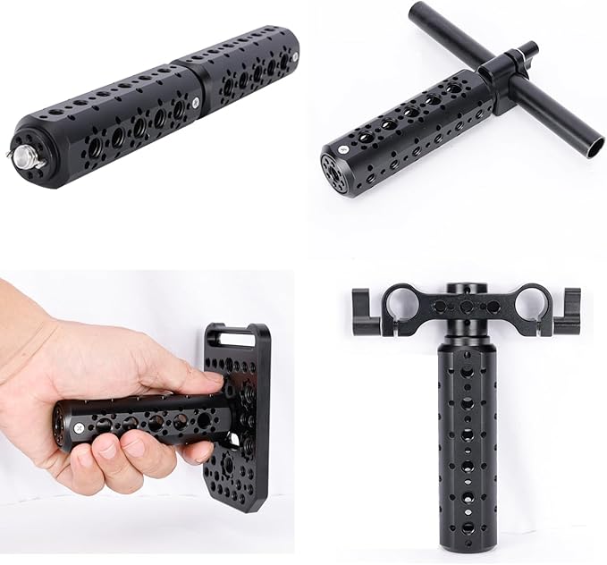チーズハンドル:ハンドル本体全体に3/8"-16 ARRIネジ穴と1/4"-20の位置決め穴が施されており、ビデオリグをDIYするための便利で多用途なハンドグリップです。