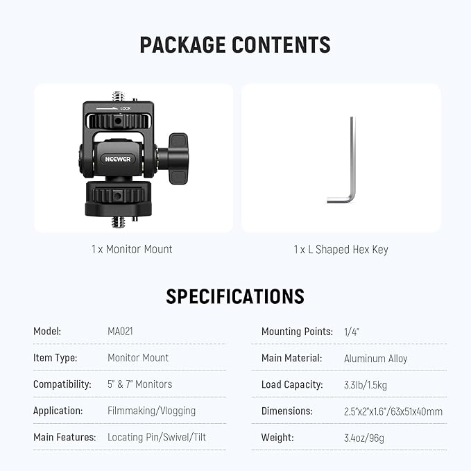【5"&7"カメラフィールドモニター用】1/4"ネジ付きモニターマウントは、5"&7"カメラフィールドモニター用に設計され、コンパチブル SmallRigとNEEWERカメラケージ、コンパチブル Fujifilm Fujiカメラ、ビデオリグ、トップハンドルアクセサリー、サイドハンドル、ジンバルスリングハンドル、カメラホットシュー、ビデオブログ、映画制作、写真撮影に最適です。