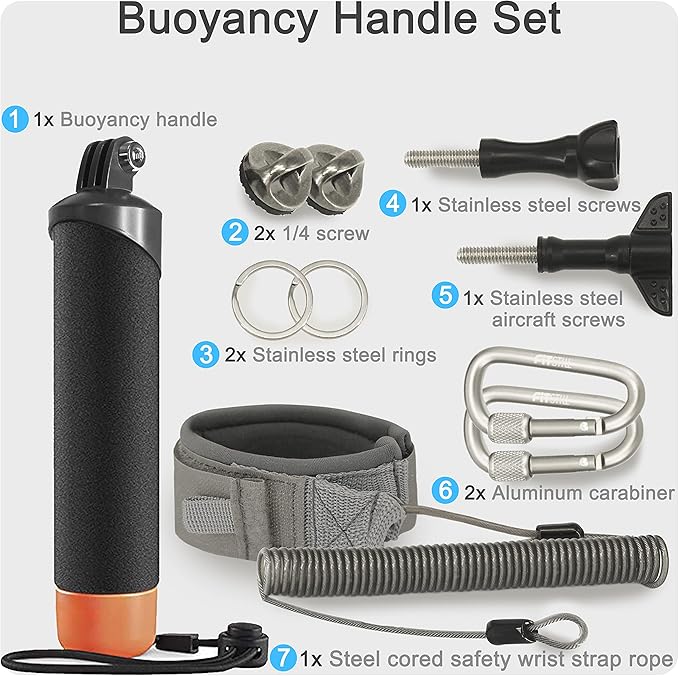 FitStill 防水一脚フローティングハンドル 紛失防止ブレスレットセット付き Go Pro Hero 13/Hero 12/Hero 11/Hero 10/Hero 9/Hero 8/Hero 7/Hero 6/Hero 5/4/3 Max Session DJI OSMOS Action Yi などのダイビング用アクションカメラに対応、紛失を防ぐために水中ダイビングに適しています