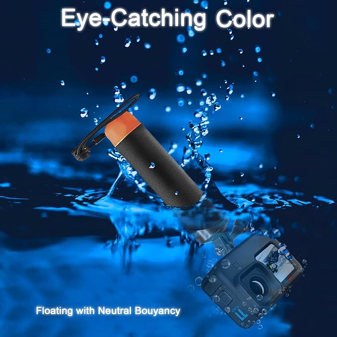 【革新的なデザイン】ハンドルのフローティングボディがカメラとアクセサリーを水面上に保ち、溺れるのを防ぎます。 調節可能な紛失防止リストストラップを装備しているため、カメラを紛失することなく手に持つことができます。
