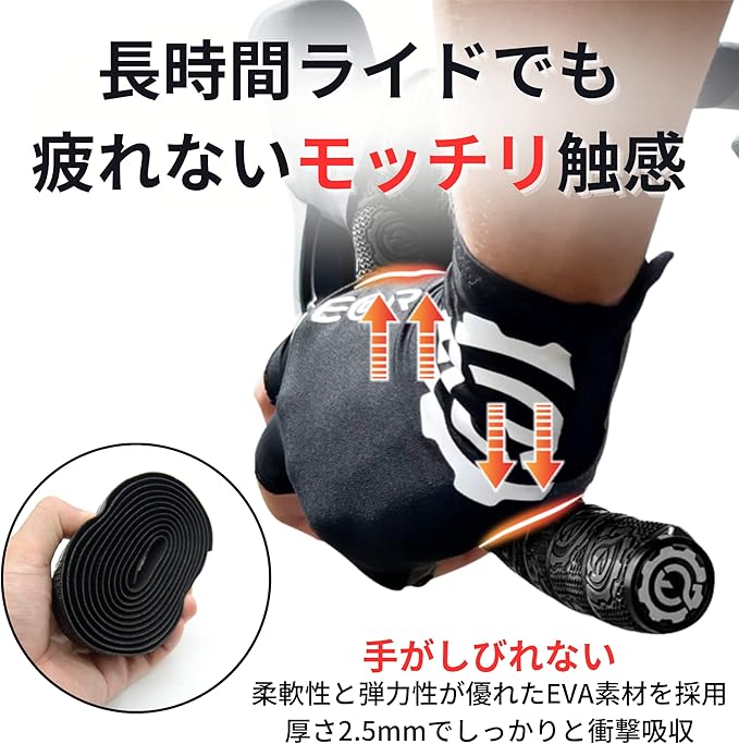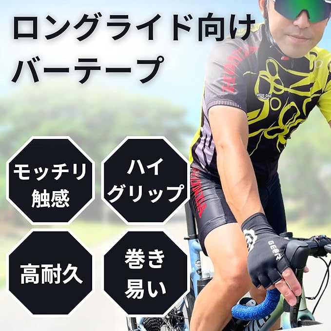 ✅【衝撃吸収】クッション性に優れたバーテープは、ロングライドでも疲れにくい仕様です。フルフィンガーグローブやレーシンググローブを使用する際にも、最適な衝撃吸収性を提供します。