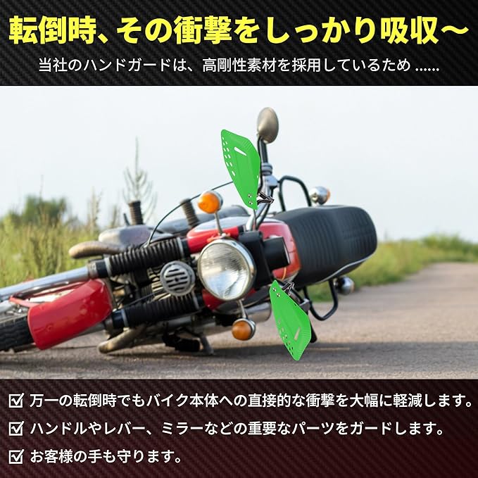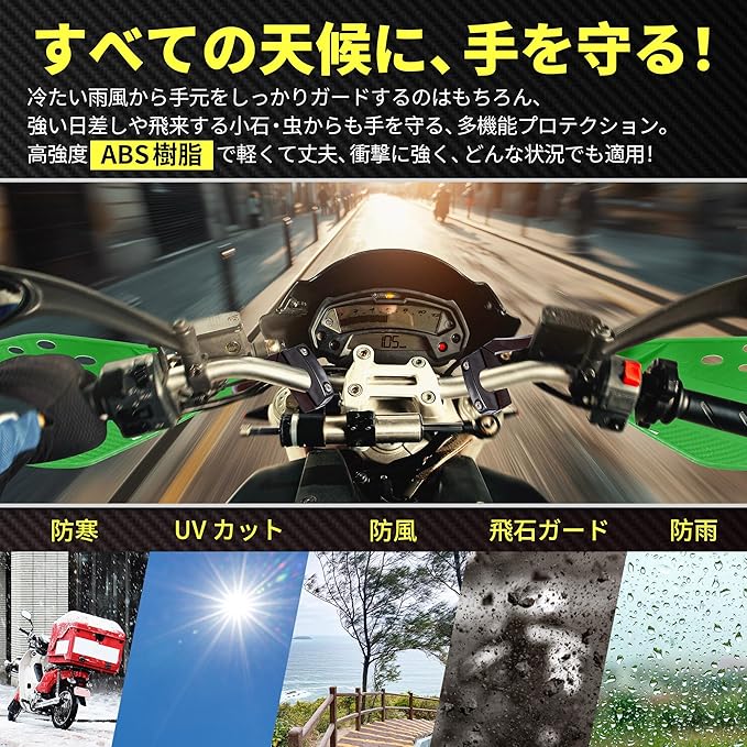 ナックルガード 汎用 バイク ナックルバイザー スクーター用 ハンドガード バイク ハンドガード 高耐久性 ハンドルカバー 風防 防寒 防雨 防護 飛び石避け グリーン 1セット