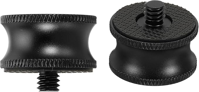 カラー:ブラック; 素材:アルミ合金; ねじサイズ:1/4オス - 3/8メス; ねじ長さ:5mm; 全体サイズ:25 x 20mm(D*H); パッケージコンテンツ:2 x カメラねじマウントアダプタ