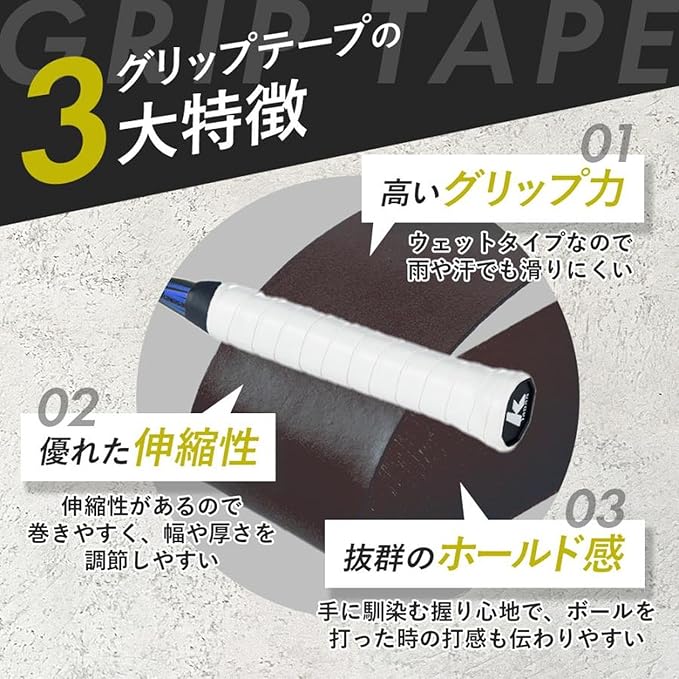 グリップテープ テニス 薄手 白 野球 ゴルフ バドミントン 自転車 軟式テニス ラケット バット 軟式テニス ウェット 滑り止め