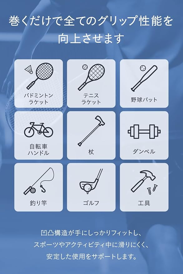 【 コスパ の高さと品質】 高品質な デコボコ グリップテープ を、手頃な価格でご提供。頻繁に巻き替えが必要なプレイヤーでも安心のコストパフォーマンスを実現しました。これにより、いつでも新品のような感触を保ちながらプレイを楽しめます。 デコボコ グリップテープ は長持ちするため、頻繁に買い替える必要がなく、経済的です。 コスパ の良い グリップテープ をお探しの方に最適です。