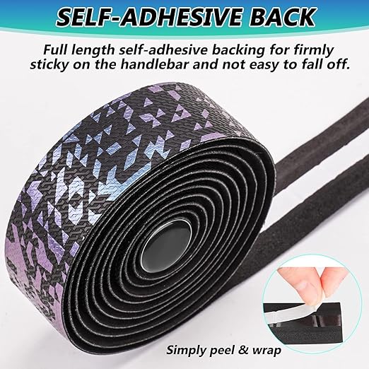 自転車 バーテープ ロードバイク ハンドル バーテープ 滑り止め 衝撃吸収 PU製 2本セット エンドキャップ、エンドテープ付き (シアンパープル)