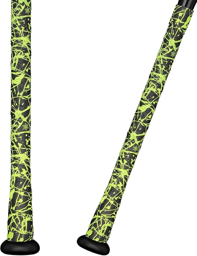 Supacaz (スパカズ) スーパー スティッキー クッシュ ネオン イエロー スプラット ベースボール バットテープ - ソフトボール バットラップ - ハイパフォーマンス プロ ビッグリーグ バットグリップ - 0.5mm