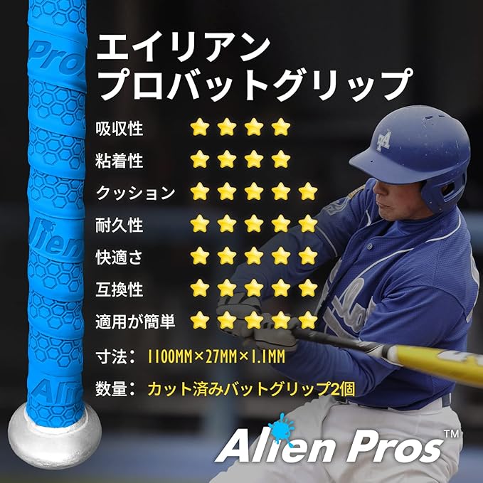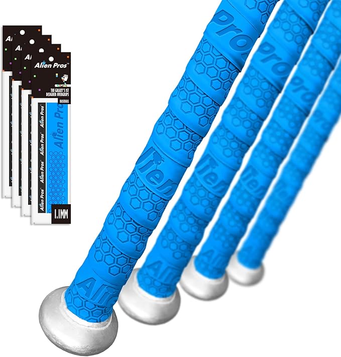 Alien Pros野球用バットグリップテープ(4グリップ)– 1.1 mmプレカット、プロ品質のバットテープ–古い野球用バットグリップの代替品–バットを保護して、壮大なホームランを打ちましょう(4グリップ,ブルー)