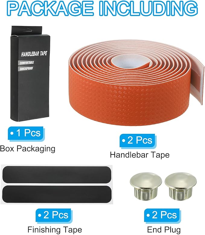 注意:バイクハンドルテープを適用する際は、適切な位置合わせと緊張を確保して安全に取り付けてください。追加の両面テープの使用をお勧めします(両面テープは含まれていません)
