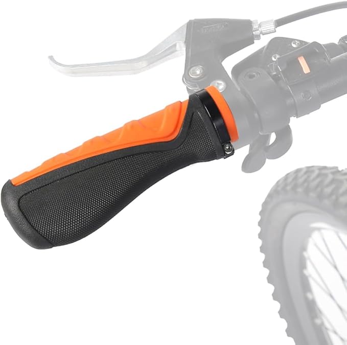 1組 滑り止めロックオン人間工学ハンドルバーグリップ - オレンジ&ブラックラバー マウンテンバイク、BMX、アーバンバイク、スクーター用