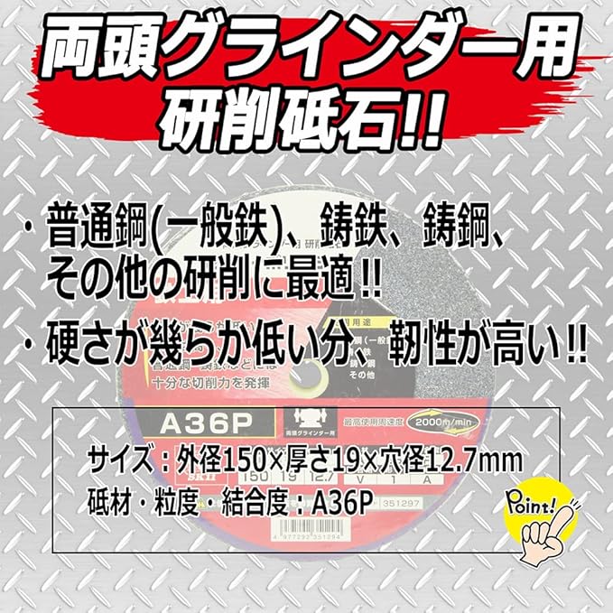 仕様:砥材A・粒度36・結合度P・結合剤V・形状1・緑形A