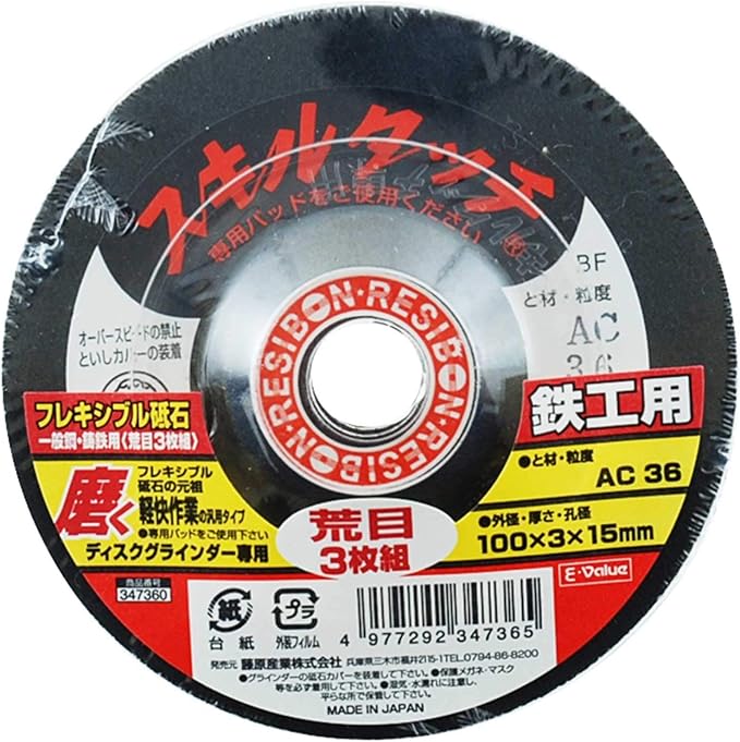 イーバリュー(E-Value) フレキシブル砥石 スキルタッチ 3枚組 一般鋼用 荒目 AC36 100 3 15mm