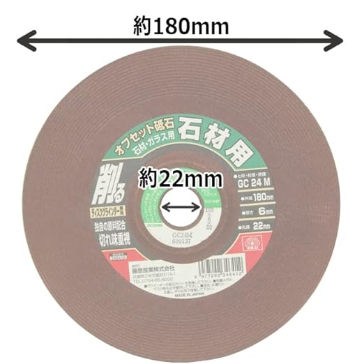 SK11(エスケー11) ディスクグラインダー用 オフセット砥石 石材・ガラス用 GC24M 180 6 22mm