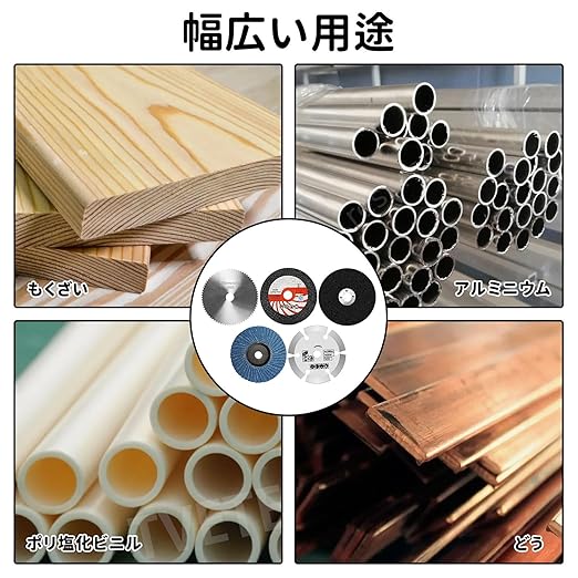 【必要なものを一度に購入】: 金属切断刃は通常、高強度合金鋼でできており、あらゆる種類の金属の切断に適しており、切断速度が速く、滑らかな切断が特徴です。石材切断刃は主に石材やセラミックタイルなどの脆性材料の切断に使用され、耐衝撃性に優れています。プラスチック木工用切断刃は、プラスチックやアクリル板などの木材の切断に適しています。このパッケージには必要なもののほとんどが含まれています。