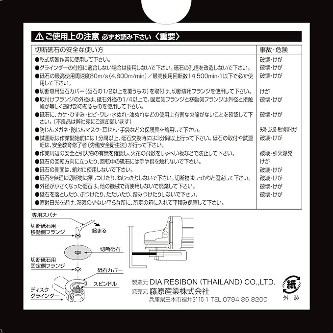※砥石に、カケ、歪み、ヒビ、ワレ、水ぬれ、油ぬれなどの使用上有害な欠陥がないことを確認して下さい。