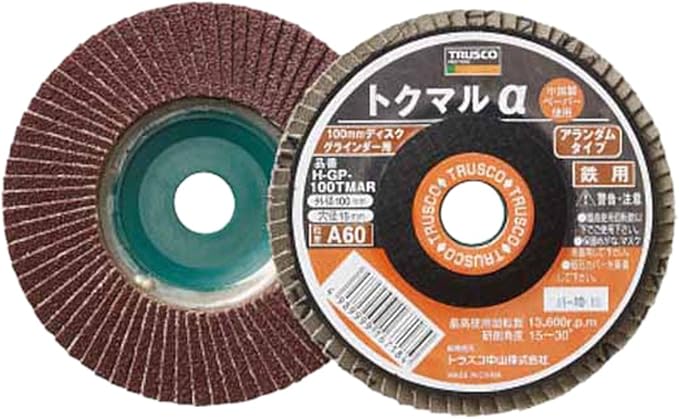 ●研削角度:15~30 ●最高使用周速度:72m/s(4300m/min)●スチールの研削・研磨、溶接ビード削り、サビ落とし、塗装はがし、木材の研磨作業。●使用工具:電動ディスクグラインダー専用。●フレキシブル砥石・オフセット砥石に比べ、研磨時の振動、騒音が少なく、幅広い用途に対応する商品です。●中国製ペーパーを使用しています。