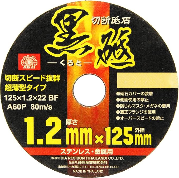 SK11(エスケー11) ディスクグラインダー用 切断砥石 黒砥 ステンレス・金属用 A60P 10枚入 125 1.2 22mm