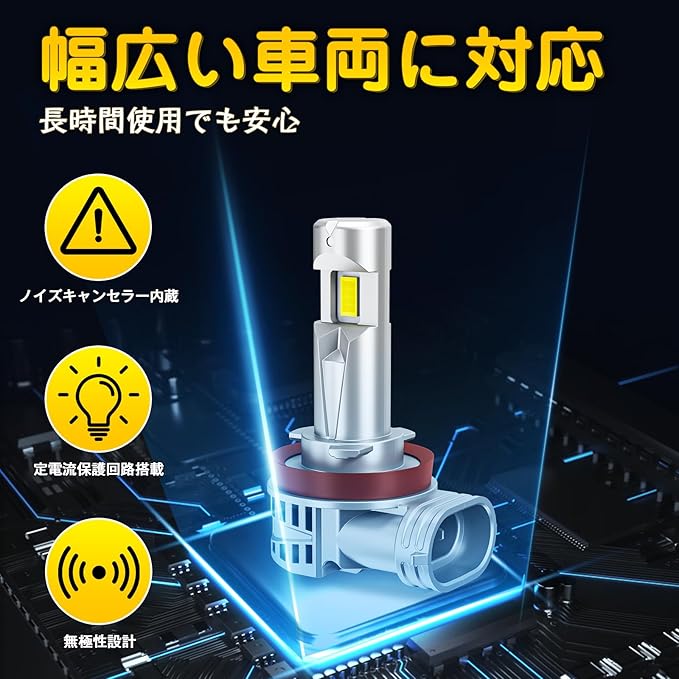【安定化回路を搭載で安心 – 長期使用でも信頼】市販のh11 ledの中には、短期間で点灯不良や故障が起こるものもあり、再購入の手間や費用の無駄が発生することがあります。Perrace h11 led ヘッドライト は安定化回路を搭載しており、長時間の使用でも安心してご使用いただけます。