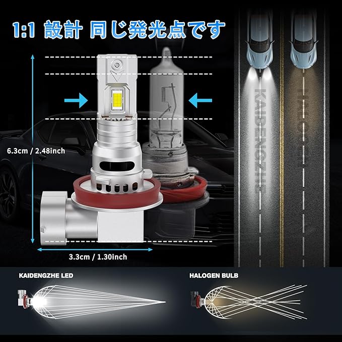 【より明るく安全な道路視認性】夜間の運転をより安全に。KaiDengZhe H8 LEDは、精密な360 ビーム(1:1ハロゲン設計と超薄型銅板)により、最大400%優れた道路視認性を実現します。暗闇のスポットや他者を眩惑する散乱光なし——ただクリアで集中した照明を提供します。