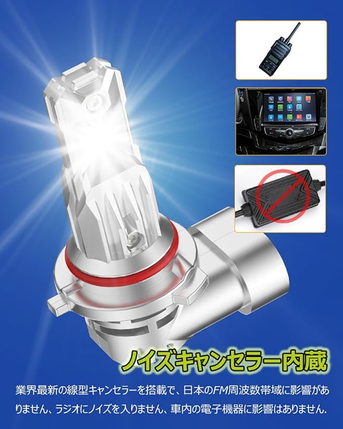 【簡単な取り付け&耐干渉】 取り付けは非常に簡単で、ハロゲンランプを直接交換するだけで、光軸を調整する必要はなく、初心者でも簡単に取り付けられる。また、本製品は耐干渉設計を採用し、カーラジオやその他の電子機器に干渉や騒音を発生させない。
