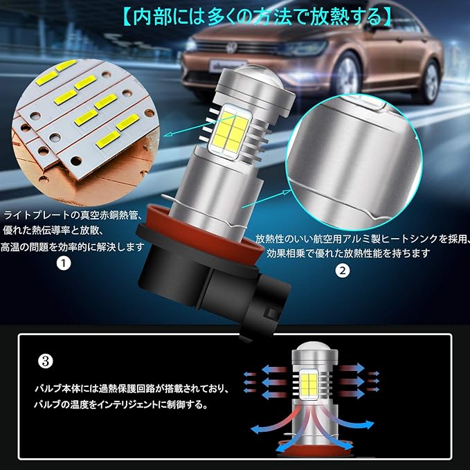 ●【安全性高い、性能安定】車用ledフォグランプ H11 LEDバルブは高性能定電流ICドライバー搭載。EMC機能内蔵、点滅しない、FMは干渉しない。大部分車種はエラーフリー!