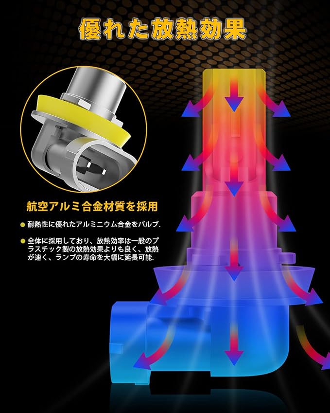 ★【放熱効果&耐久性抜群】銅基盤と航空アルミヒートシンクと組み合わせ、瞬間の熱伝導と短時間の排熱ができて、効率の高い放熱も可能になります。そして、製品の寿命を伸ばすこともできます。ファンがありませんから、全く騒音ばありません。航空用アルミ合金材質を採用、放熱効果が抜群で、LED素子の耐久性もアップでき、50000時間以上使用できます。