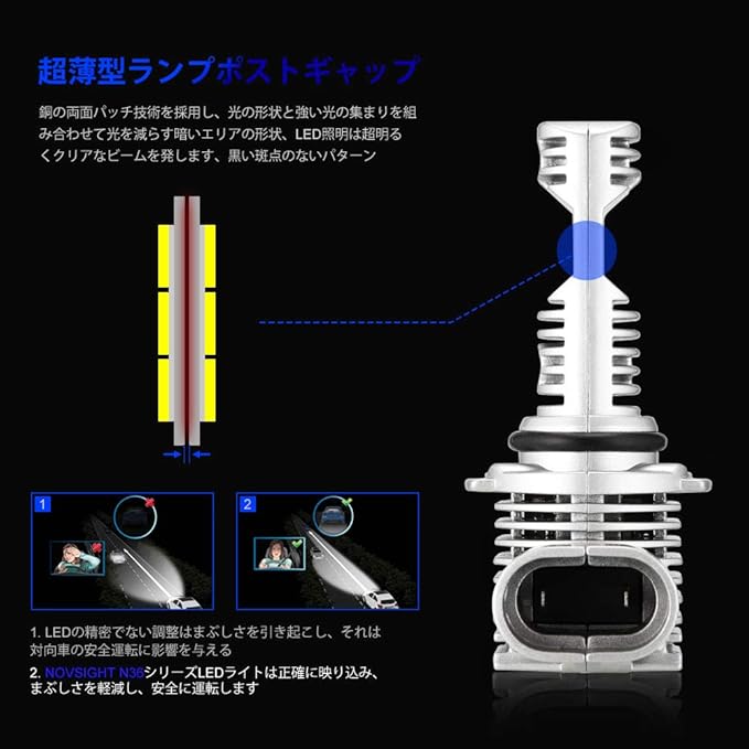 【NOVSIGHT業界で再度アップグレード版】 コンパクトの一体式なデザインを採用し、ハロゲンランプを完璧に切り替えることができます。ハロゲンボールが同じ位置で発光することを実現し、光軸を調整する必要がありません。完璧なビームモードがあり、安定した出力、黒い点や影のエリアがありません。もっと安全な夜間運転を実現します!純粋なハロゲン電球と比べて、明るさが300%を増やして、100%省エネになります。節電、耐久性に優れた逸品です。純粋なハロゲンランプのLED化を体験することに最適です!
