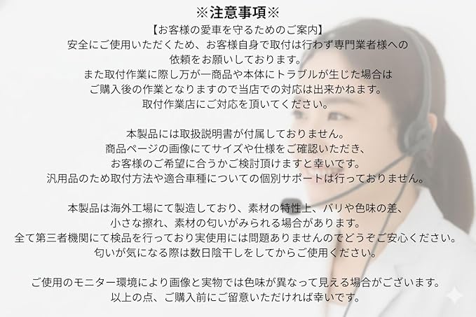 【注意事項】取り扱い説明書はありません。取付、適合確認のサポートは行っておりません。画像及び寸法をご参考にご判断ください。当商品の仕様に関する愛車の破損に関し責任を負いかねます。取付を安全に行うためお近くのショップへご相談ください。※海外生産品の為、製造上のバリ、若干の色ムラ、輸送時の小傷等が発生する場合がございます。またモニター環境により実際の色と違って見える場合がございます事、予めご了承の上ご購入下さいませ。