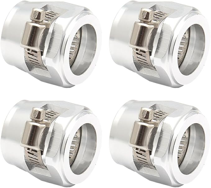 ノーブランド品 4ピースの長持ちコンポーネントアルミニウム六角ホースフィニッシャークランプ - 取り付けが簡単で強力なホースエンドフィニッシャー, 銀, AN6.4本