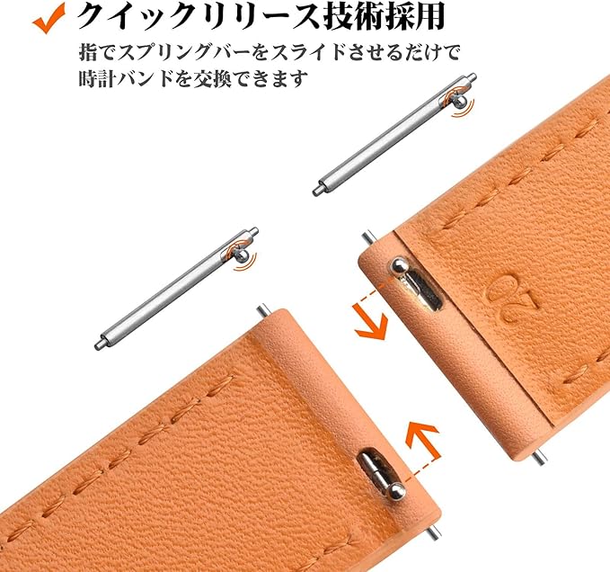 クイックリリースバネ棒のレバーをスライドすると、ツールを使わずただ指で腕時計ベルトを装着できます。