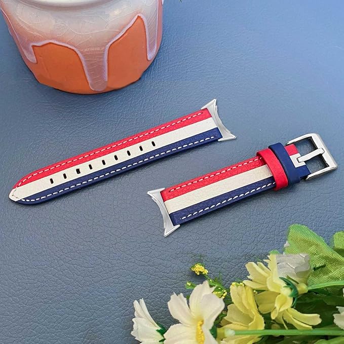 [heroVert] Google Pixel Watch Pixel Watch2 バンド レザー 本革 本革バンド ソフトベルト 交換用バンド 男女兼用 長さ調節 ピンバックル 無地 花柄 柄バンド ビジネス 柔らかい レディース メンズ トリコロール バイカラー 000066 (トリコロール)