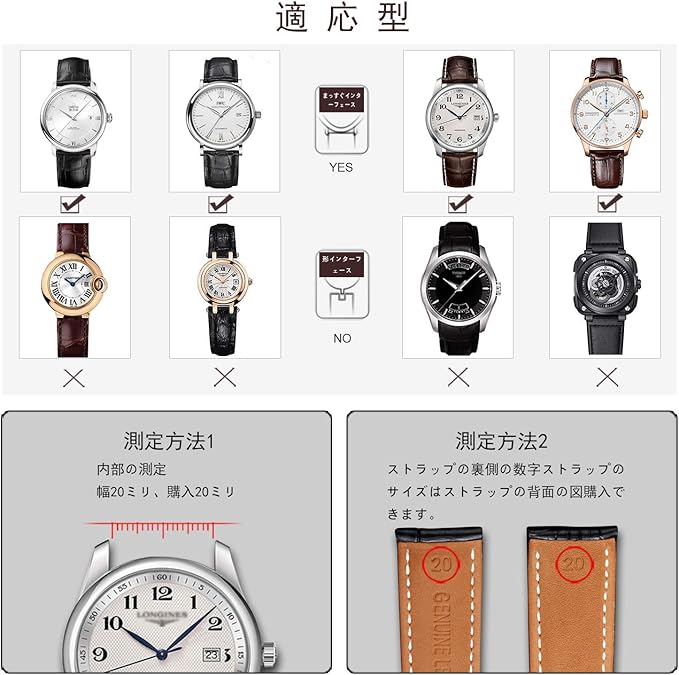【腕時計のセレクション】: クラシックなデザインスタイル。高級時計用に作られており、従来の腕時計やスマートウォッチと互換性があります。 セット内容:1個-316Lステンレススチールバックル + 本革時計バンド; スプリングバー4個; スプリングバーリムーバー1個; インストールマニュアル1枚; ワイプクロス1枚
