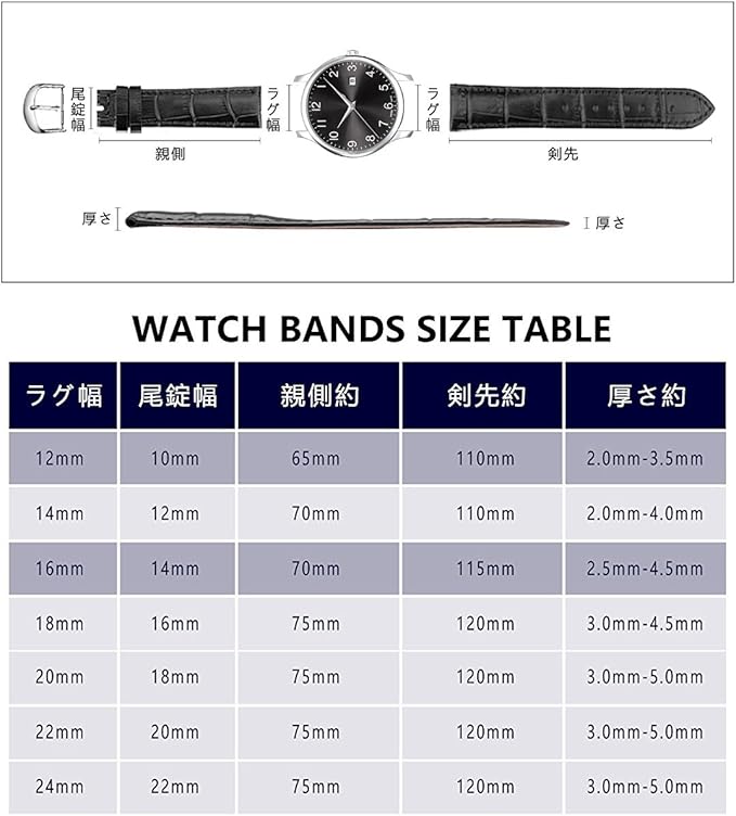 [Zanlive] 20mm 時計バンド 腕時計のバンド 12mm 14mm 16mm 18mm 20mm 22mm 時計ストラップ 本革 替えベルト 替えバンド ベルト 交換 耐水性 装着簡単 観音開き尾錠