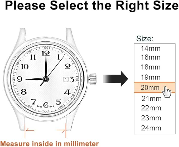 この時計バンドはラグ幅 23mm のバネ棒(スプリングバー)を使う伝統的な腕時計やスマートウォッチに適用します。