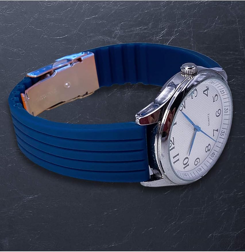 [Reinherz] 時計バンド 腕時計ベルト シリコン 16/17/18/19/20/21/22/23/24mm オレンジ ブラック ネイビー 黒/銀留め具 ゴム ラバー 撥水 タイピングできる留め具 柔軟肌ざわり 運動 水泳 高級 汎用 工具 バネ棒 説明書