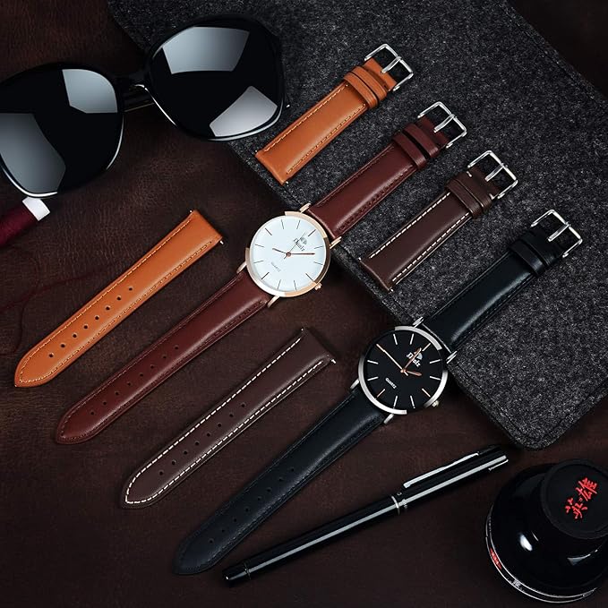 TStrap レザー時計ベルト20mm 18mm 19mm 22mm 本革腕時計バンド スマートウォッチベルト交換 メンズ 時計ばんど 時計べると バックルとスライド式バネ棒付き | peaceFull store