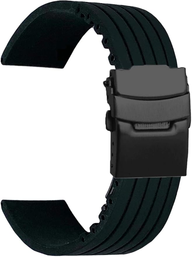 【厳選した素材】バンド自体は撥水性持ちのシリコンラバーです。防水、防汗、通気、超耐久性が特徴です。留め具はDバックルの他にまた二重ロックを搭載した安心設計です。タイピングの途中にもバンドが外れることは一切ありません。