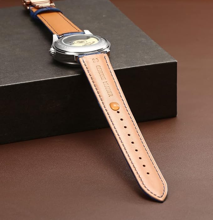 [Moran] 本革時計バンドクイックリリースポリッシュ展開Dバックル、男性女性用,18mm-24mmカーフレザー交換用時計ストラップ、防水、防汗
