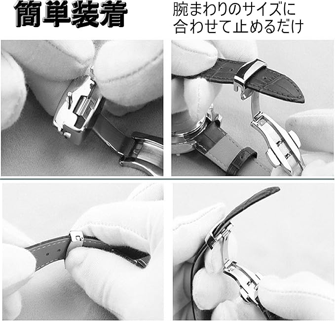 [イーショップ] プッシュ式 腕時計 バンド 本革 Dバックル 観音開き クロコダイル 型押し ベルト ばね棒はずし 付