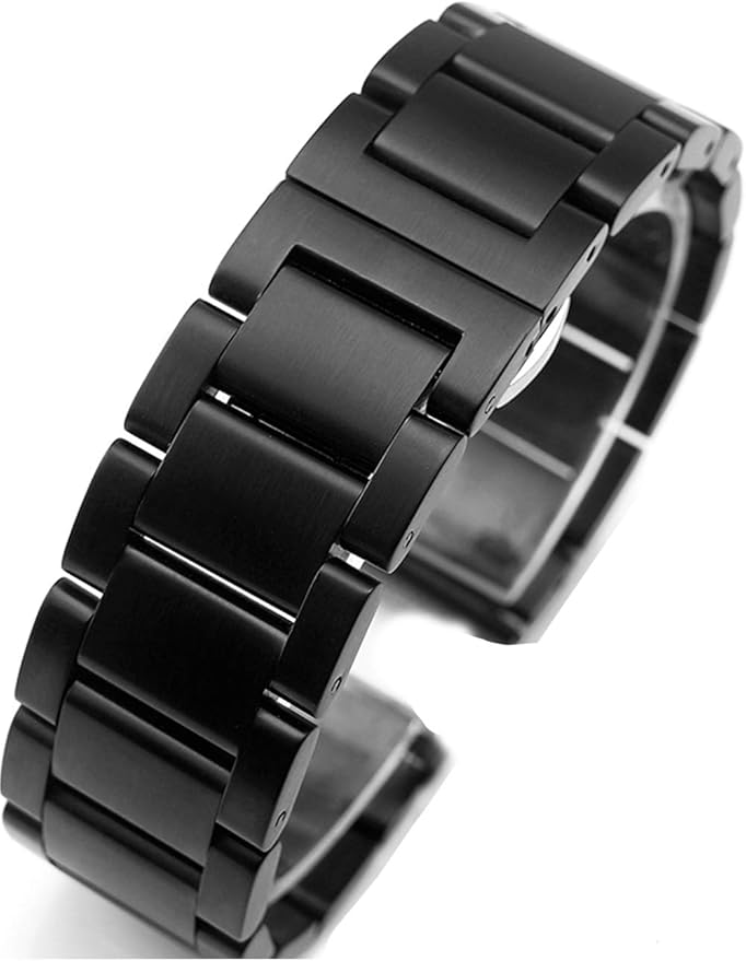 [Reinherz] 艶消し色 腕時計バンド 23mm ステンレス 時計バンド ベルト Dバックル シルバー ブラック スライド式取付式 マット 取り替え 汎用 充実 丈夫 男女兼用(ブラック23mm)