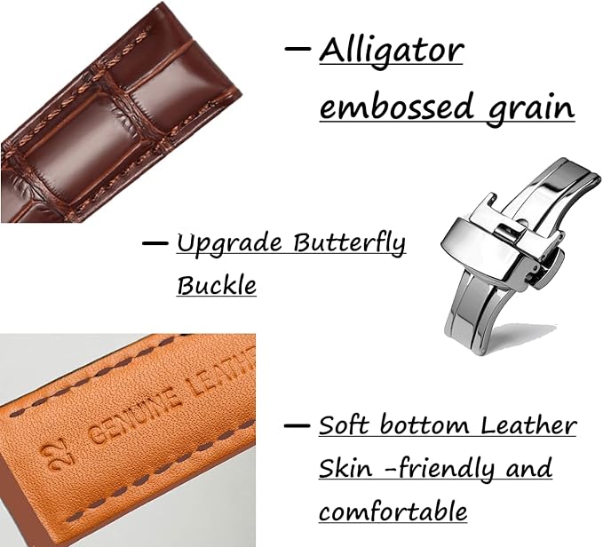 1 xバタフライバックル付きの革製時計バンドストラップ