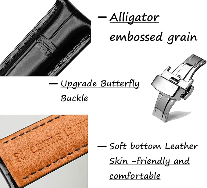 ⭐【時計の選択】:クラシックなデザインスタイルとあなたの高級時計のために作られ、伝統的なまたはスマートな時計と互換性があります。セット内容: 1個 セット --316Lステンレス鋼バックル +本革時計バンド ; 4個 xバネ棒 ; 1個 xバネ棒外し ;1個 xインストールマニュアル ; 1個 ワイプクロス 。