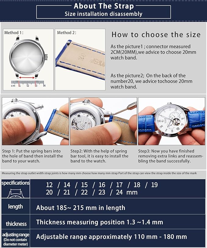 【ほとんどの腕時計に適用】12-24mmの時計バンドはほとんどの自動巻き腕時計、クオーツ腕時計とスマートウォッチブランドに互換性があります。