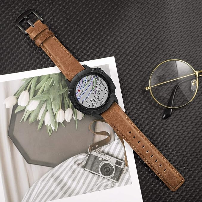 TRUMiRR 腕時計バンド Fenix 7X Pro サファイアソーラー / 6X Pro / 5X Plus用 26mm クイックリリース腕時計バンド 本革 牛革 ストラップ Garmin Epix Pro 51mm / Fenix 3 / Descent Mk1 Mk2 Mk2i Mk3i 51mm用